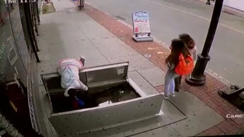 Un video de seguridad grabó el momento en el que la mujer caminaba el jueves por una calle de la ciudad de Plainfield, viendo atentamente su teléfono. Muestra cuando pasa por una puerta abierta, se tropieza y cae por la apertura a un sótano.