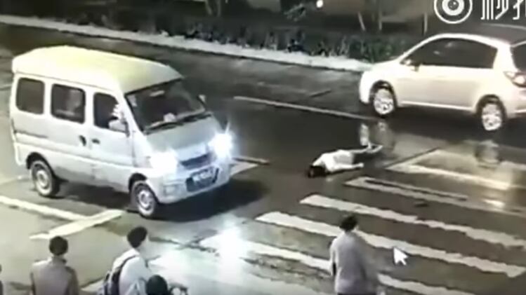 Este muestra cómo dos carros le pasan encima a una mujer en una de las avenidas más concurridas de China, Zhumadian.