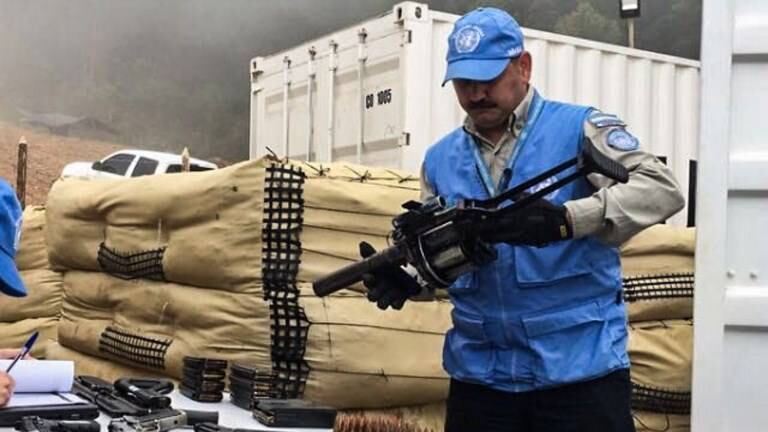 En La Elvira, un delegado de la misión de la ONU (a cargo de este proceso) recibió el lote de armas y comprobó que estuvieran sin municiones, antes de identificarlas y colocarlas en depósitos.