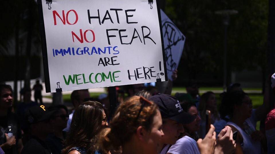 "El peor presidente" o "inmigrantes bienvenidos" fueron las consignas de los inconformes de la política del gobernante Trump.