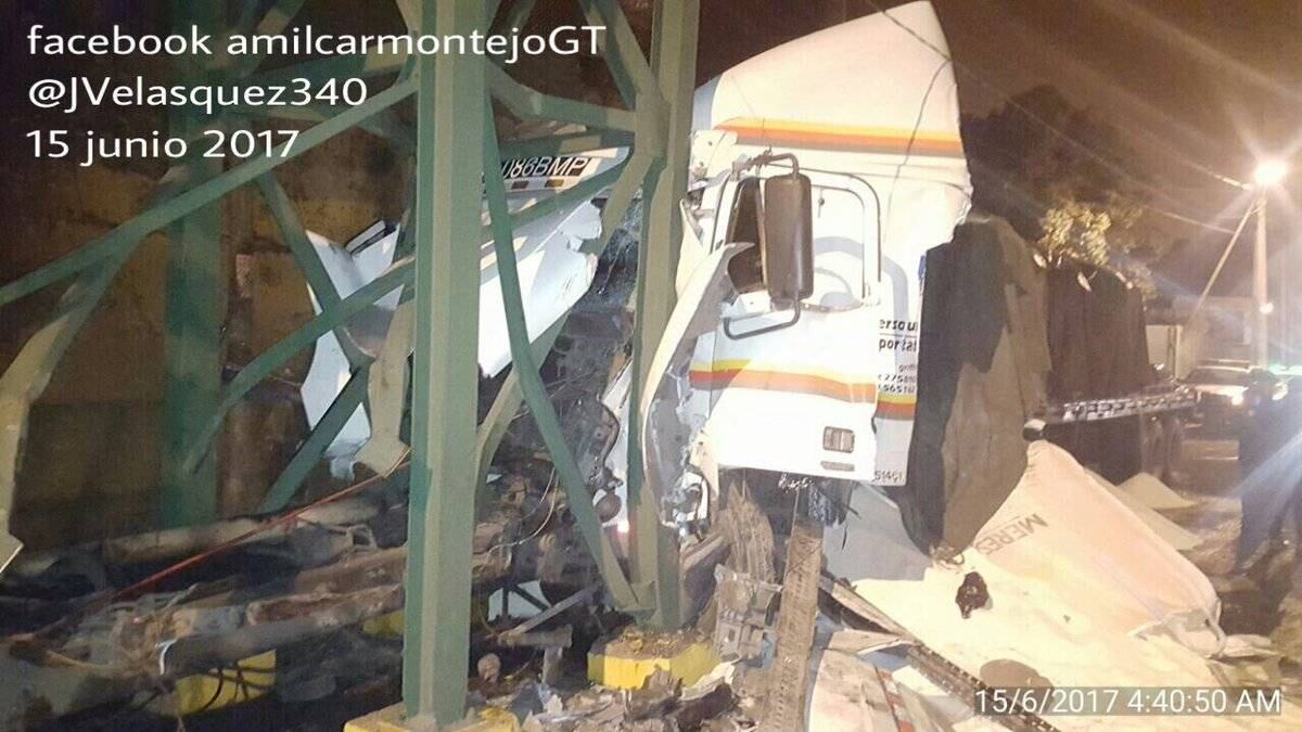 Un tráiler colisionó hoy contra una pasarela ubicada en el Periférico oriente, específicamente 100 metros antes del puente El Incienso, en la zona 7 capitalina.