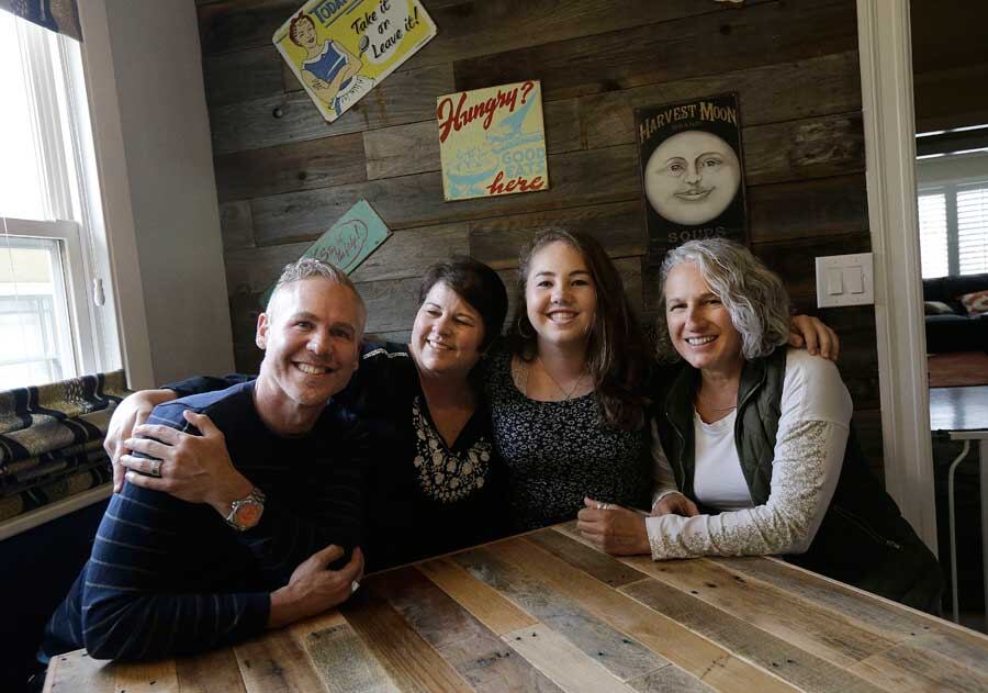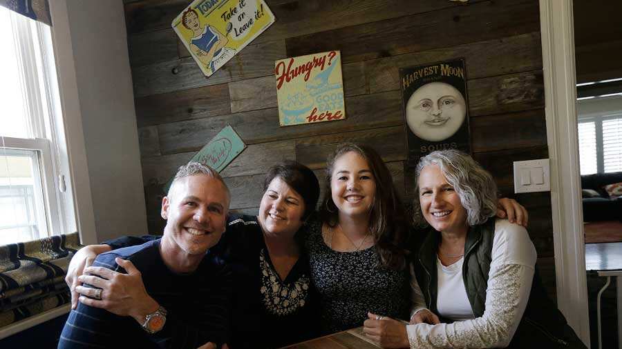 La familia de Madison se abrazó para que les tomaran una foto en un juzgado de California para celebrar el día en que por fin se volvió oficial que la joven de 16 años tiene tres padres.