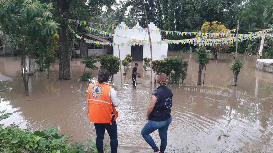 - Inundación en la Línea B5, Palestina, La Máquina, Suchitepéquez. Cinco viviendas continúan con agua en sus patios y su interior.