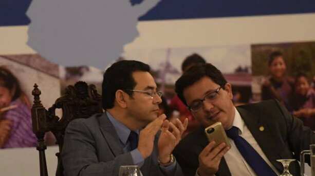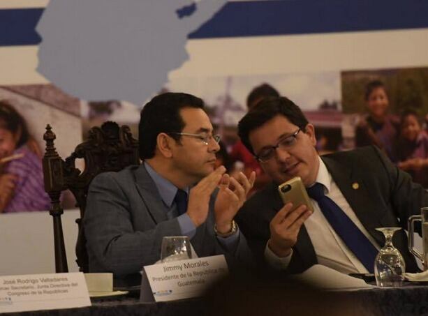 Julio Héctor Estrada, titular de Finanzas y el mandatario presentaron ayer los techos indicativos para 2018 de las instituciones gubernamentales, donde se prevé un proyecto de presupuesto general de Q87 mil 672 millones.