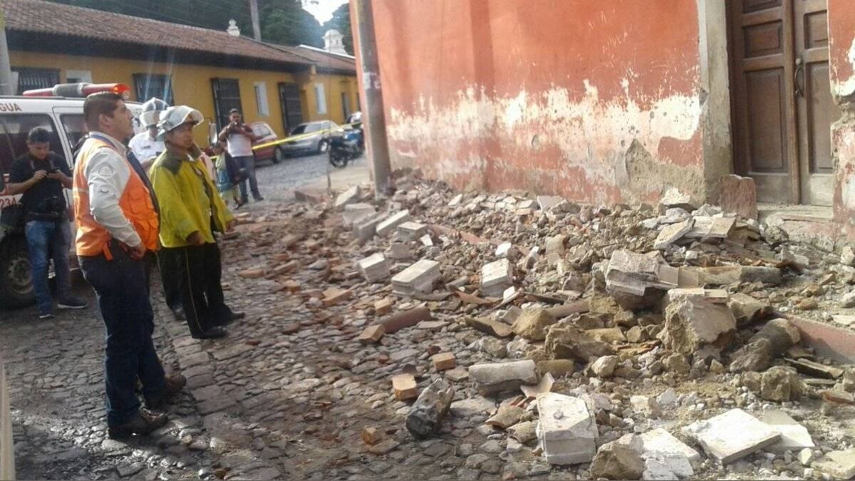 En Guatemala, la pared de una escuela de la zona 1 del municipio de Mixco cayó como consecuencia del temblor.