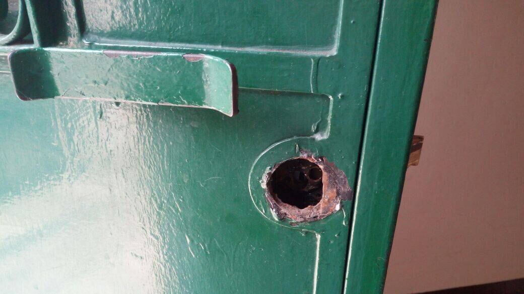 Este inusual incidente en pleno día ocurrió en la 2a. calle y 5a. Avenida de la zona 1. Los agentes notaron que la puerta de metal había sido forzada.