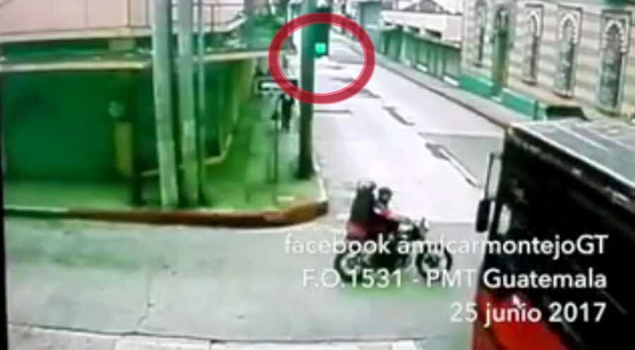 El percance vial fue provocado por el motociclista, según se aprecia en un video publicado por el intendente de la Policía Municipal de Tránsito (PMT), Amílcar Montejo, ya que no respetó el rojo que marcaba el semáforo.