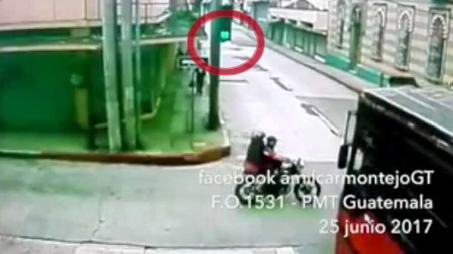 El piloto del vehículo de dos ruedas no respetó la señal de tránsito sobre la 13 calle y al cruzar fue cuando el bus urbano lo embistió de frente, quien sí llevaba la vía, sobre la novena avenida, según se puede observar en el material audiovisual.