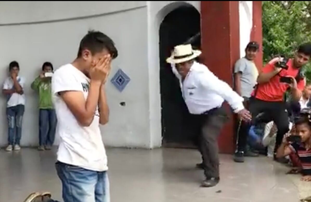 ¡Disculpen, ya no lo vuelvo a hacer! ¡Disculpen por todo!, dijo el joven previo a recibir los 13 xicayes como parte del castigo maya.