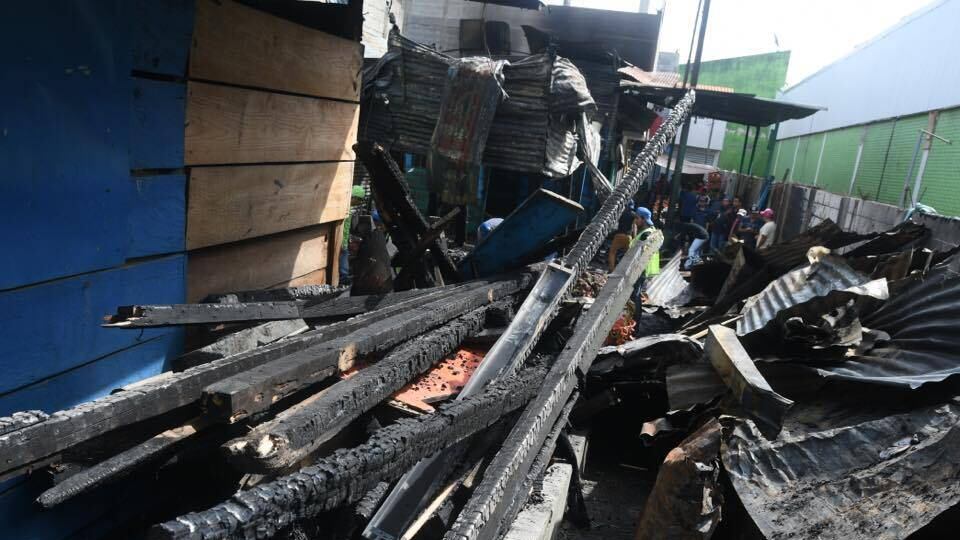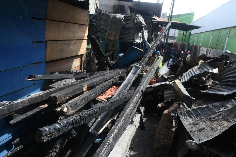 Luego del incendio ocurrido ayer en el mercado La Terminal, zona 4 capitalina, trabajadores municipales y comerciantes realizan este martes trabajos de limpieza en el lugar.