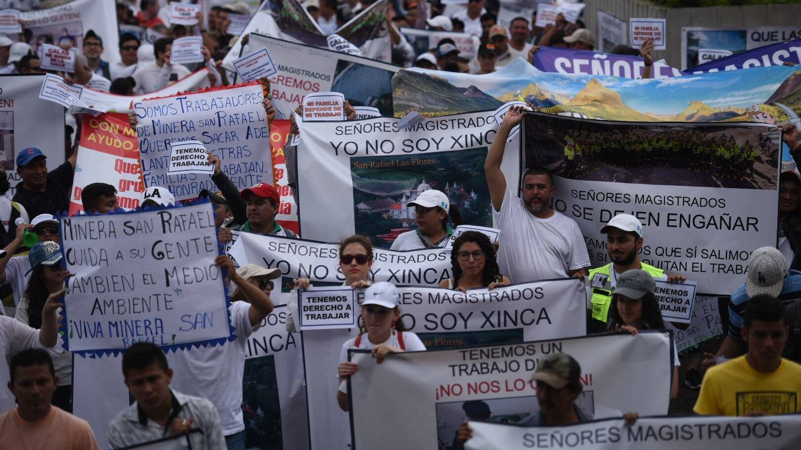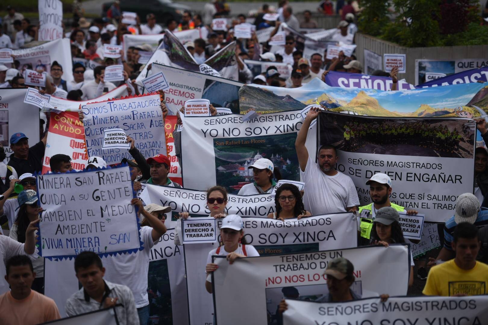 En las afueras de la Corte Suprema de Justicia se realiza este miércoles un plantón a favor de la mina San Rafael, en San Rafael Las Flores, departamento de Santa Rosa.