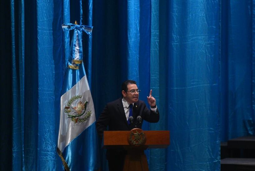 Durante su discurso en la firma de la alianza de los Objetivos de Desarrollo Sostenible (ODS) con el plan nacional K'atun 2032, el presidente Jimmy Morales se mostró molesto y exaltado frente al micrófono.