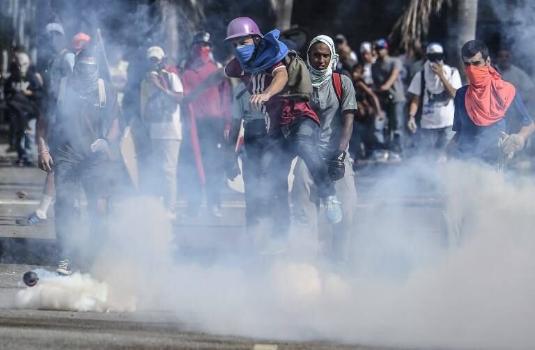 Antes, los siete militares resultaron heridos por la explosión de un artefacto lanzado por manifestantes contra una caravana de uniformados durante un enfrentamiento en Altamira, acomodado barrio del este de Caracas.