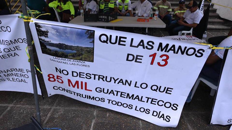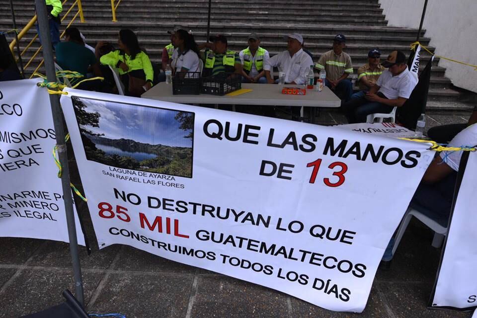 El miércoles también se realizó un plantón frente al Organismo Judicial a favor de la mina San Rafael, la cual está ubicada en el municipio de San Rafael Las Flores, Santa Rosa. Los manifestantes señalaron que necesitaban mantener sus empleos.