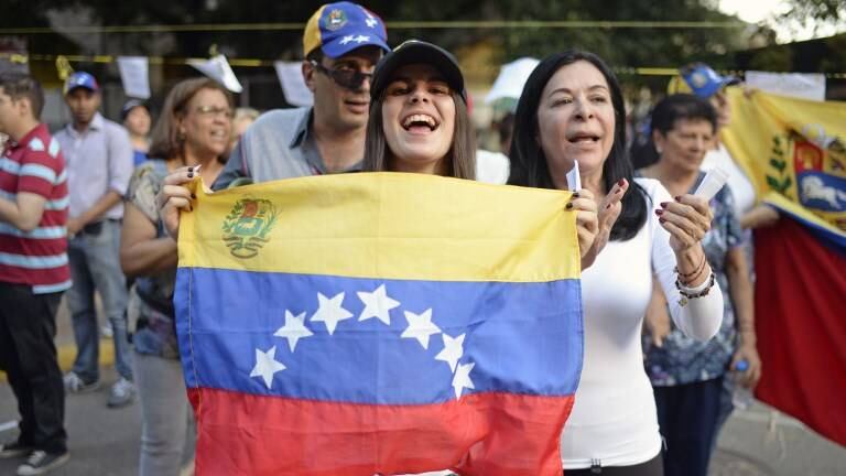 "¡Hora cero, hora cero!", coreaban manifestantes junto a Freddy Guevara, presidente del Parlamento de mayoría opositora, desde uno de los centros de votación de la consulta en Caracas.