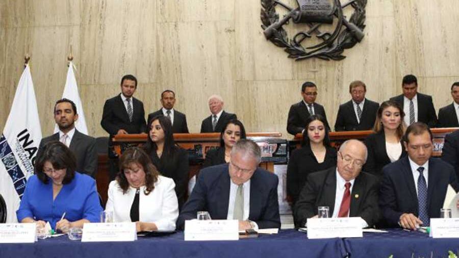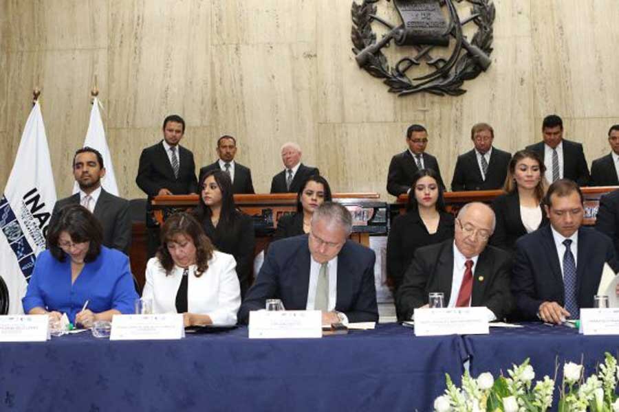 Funcionarios del Ministerio Público (MP), Ministerio de Gobernación, Organismo Judicial (OJ), Instituto de la Defensa Pública Penal, Instituto Nacional de Ciencias Forenses y Stefano Gatto, Embajador de la Unión Europea en Guatemala, firmaron hoy el convenio para el uso de Centros Integrados de Justicia (CIJ), en Petén y Alta Verapaz.