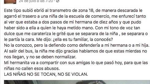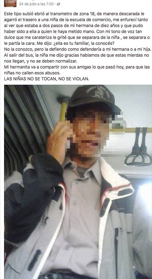 Una usuaria compartió en su red social Facebook un abuso hacia una niña y cómo podríamos los guatemaltecos actuar ante este tipo de agresiones sexuales.