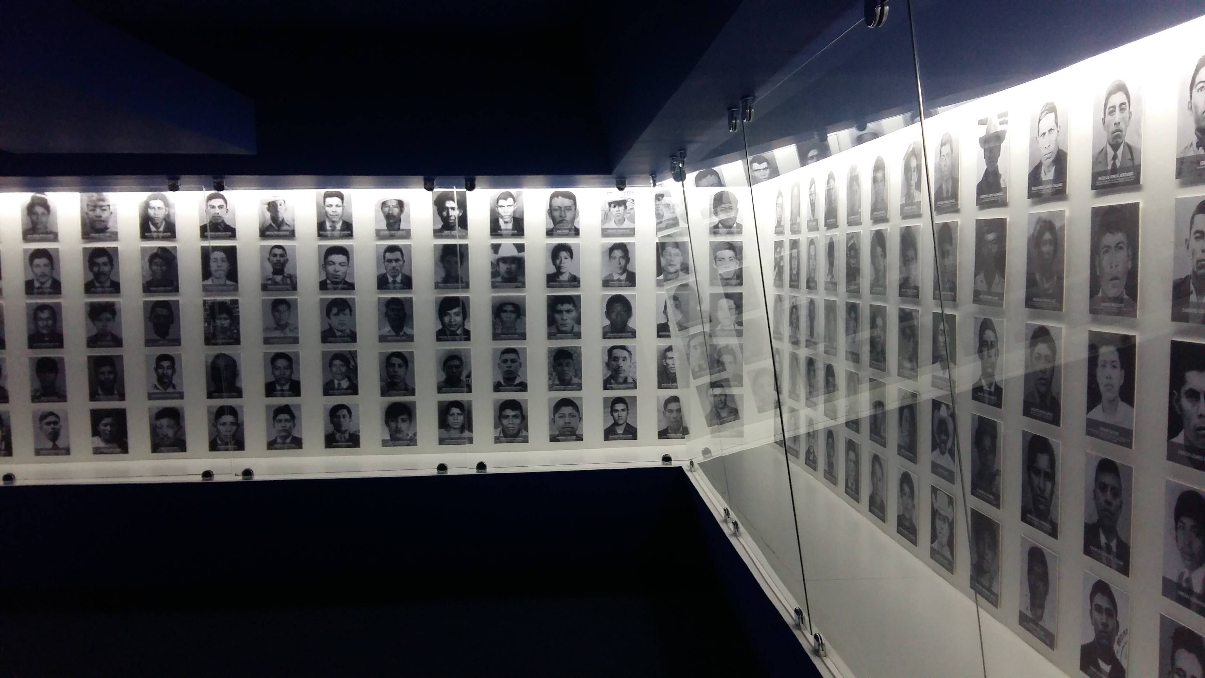 Cientos de fotografías se encuentran apiladas en las paredes de esta sala, así como listas de nombres de tan solo algunas de las personas que han podido ser identificadas tras las exhumaciones realizadas.