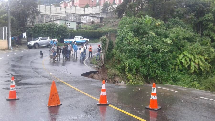 La Coordinadora Nacional para la Reducción de Desastres (Conred), informó sobre un hundimiento en el kilómetro 16 de la ruta que conduce hacia Santa Catarina Pinula.