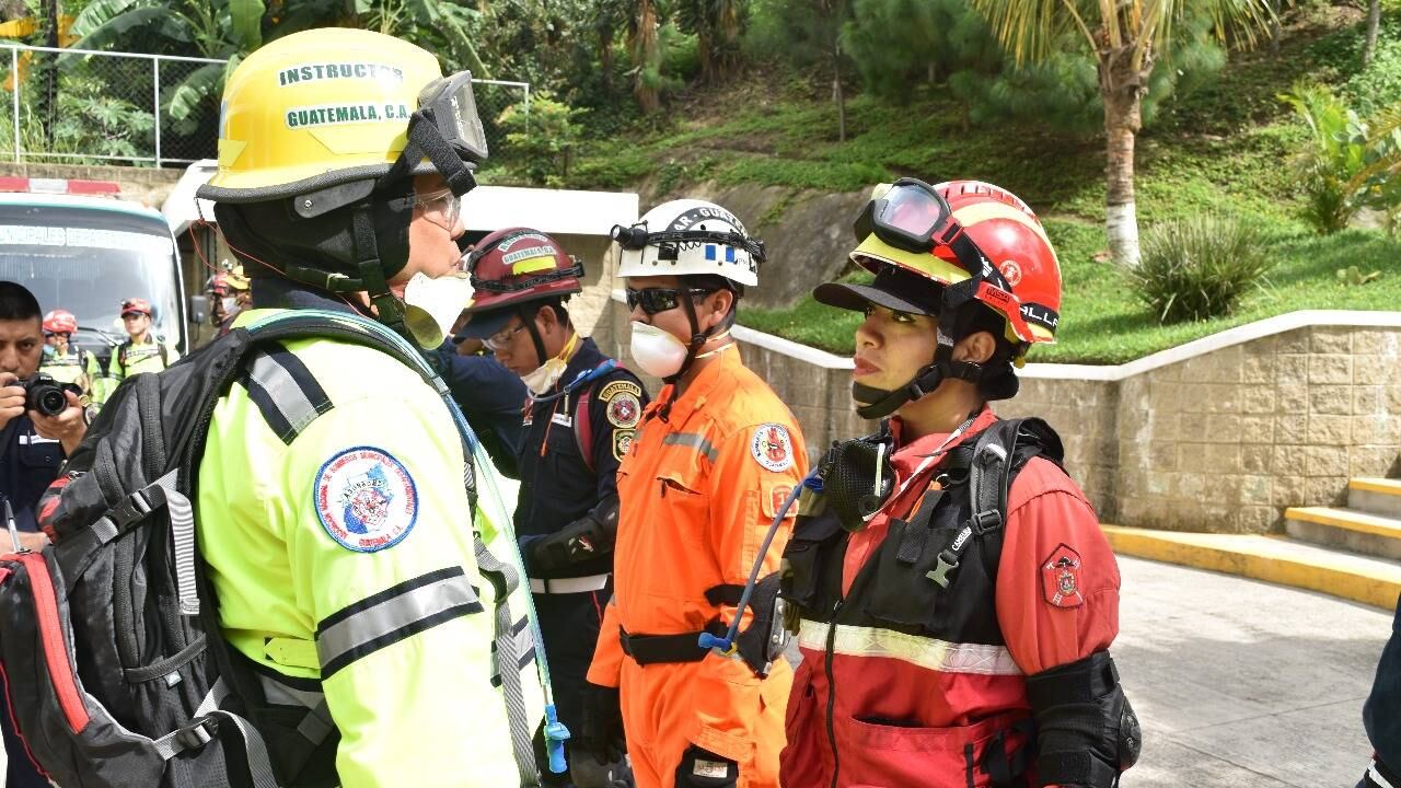 Socorristas de siete países participan en un curso sobre Búsqueda y Rescate en Estructuras Colapsadas, el cual es impartido esta semana en el país por instructores guatemaltecos.