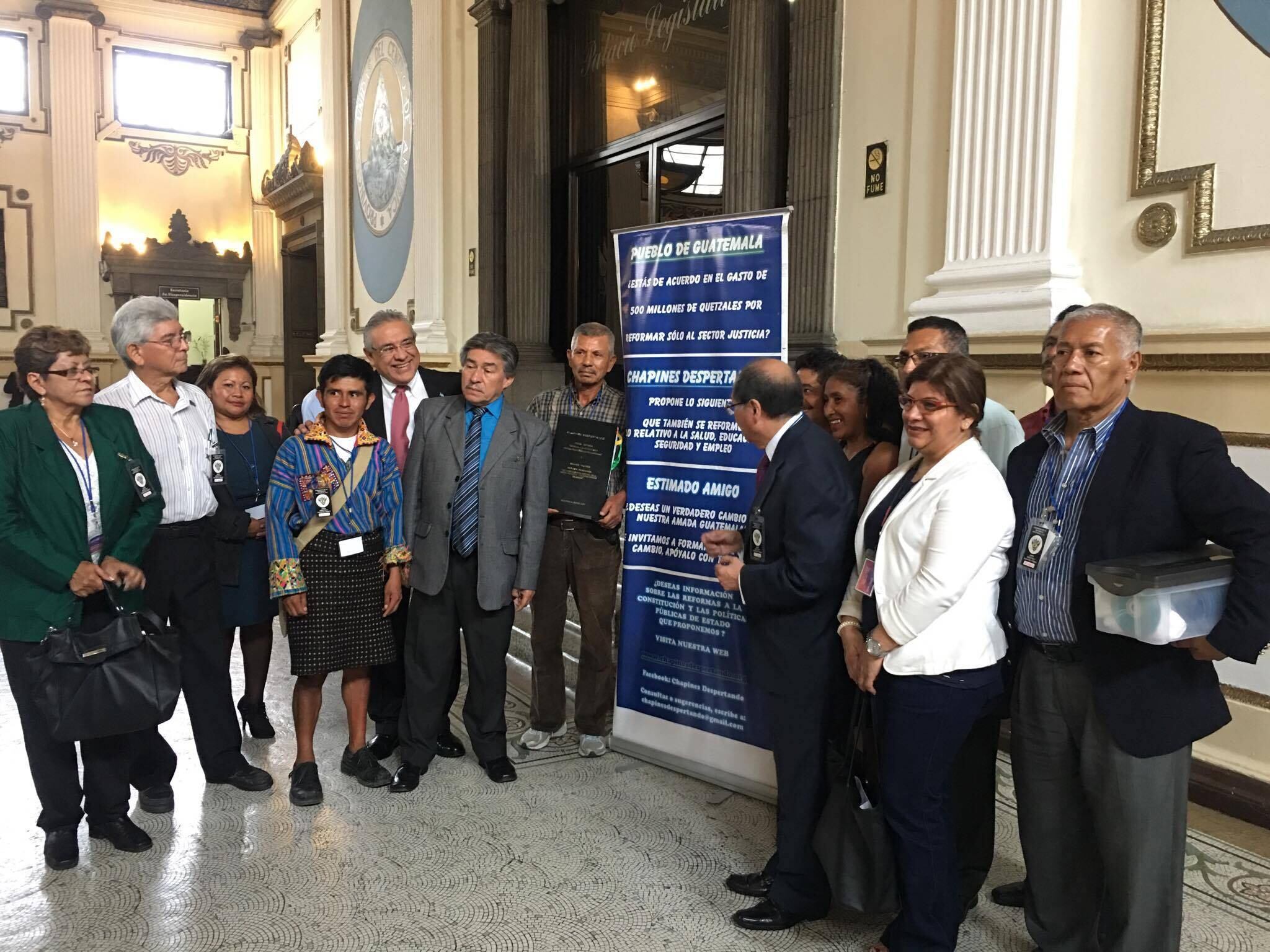 El movimiento ciudadano denominado "Chapines Despertando" entregará esta mañana una propuesta para reformar la Constitución para que se elimine la reelección de cargos públicos, la cual cuenta con más de cinco mil firmas de ciudadanos que la respaldan.
