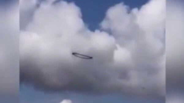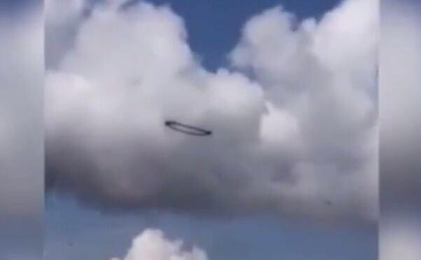 El fenómeno fue descrito por testigos como un “aro” o “círculo” de color negro que “flotaba” entre las nubes. En videos compartidos más tarde en las redes sociales se observaba, justamente, una especie de circunferencia, parecida a un aro de humo, agitándose sobre un mismo punto.