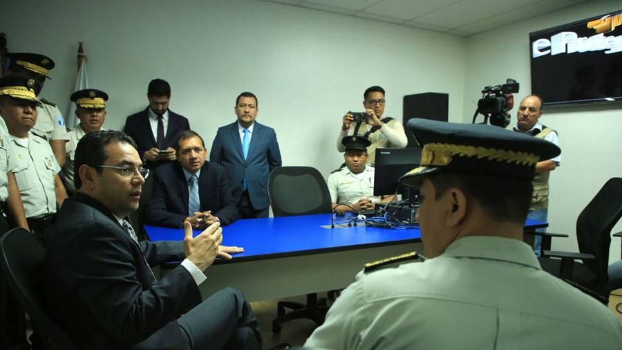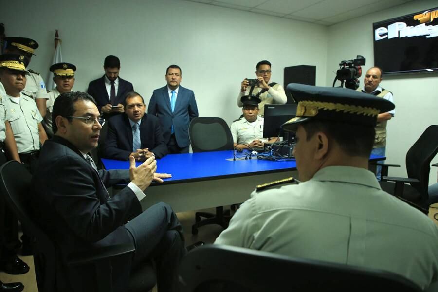Jimmy Morales visitó la comisaría 14 de la Policía Nacional Civil (PNC), en al zona 7, en donde recibió un informe que destaca el descenso de criminalidad en un 15 por ciento en comparación con el 2016, de acuerdo con una nota de AGN.