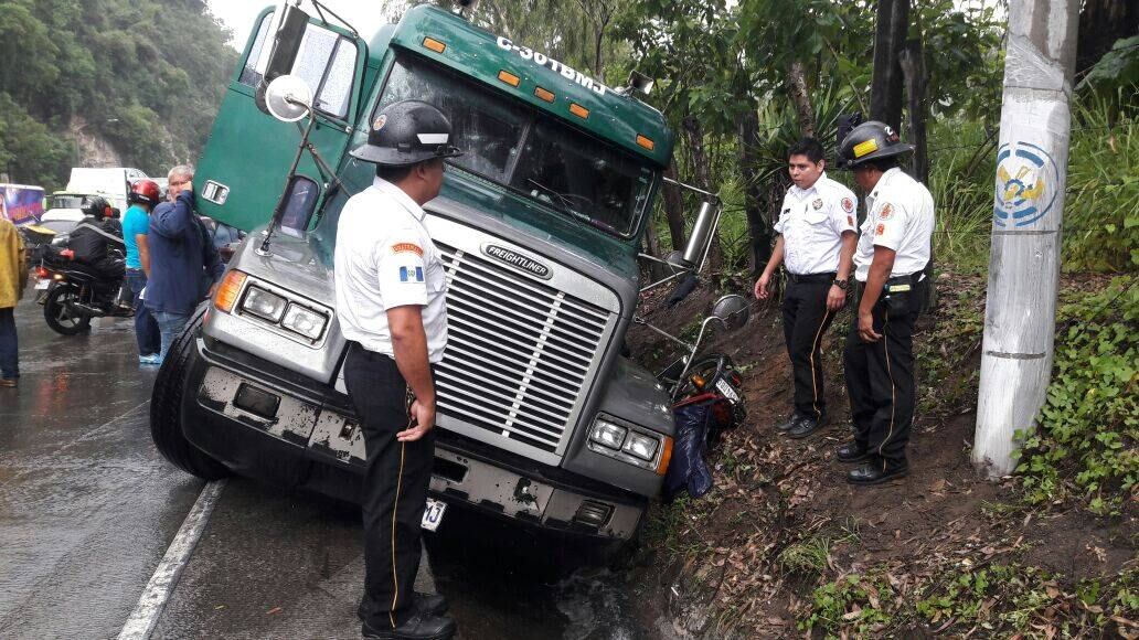 Según informó la vocera de la Policía Municipal de Tránsito (PMT) de Villa Nueva, Dalia Santos, un tráiler derrapó sobre la cinta asfáltica mojada en la cuesta de Villa Lobos, hacia el sur.