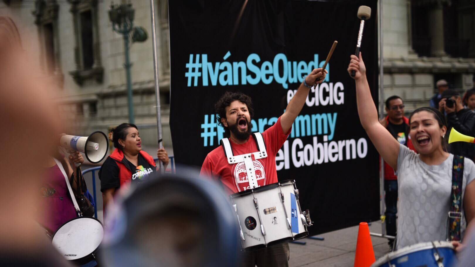 Varias decenas de personas se dieron cita en los alrededores de Casa Presidencial y Palacio Nacional de la Cultura, para manifestar su apoyo a Iván Velásquez, jefe de la Comisión Internacional Contra la Impunidad en Guatemala (CICIG), primordialmente, así como para lanzar consignas en contra del presidente Jimmy Morales.