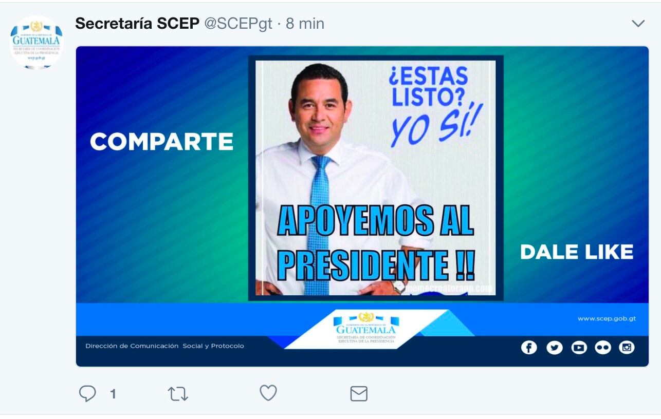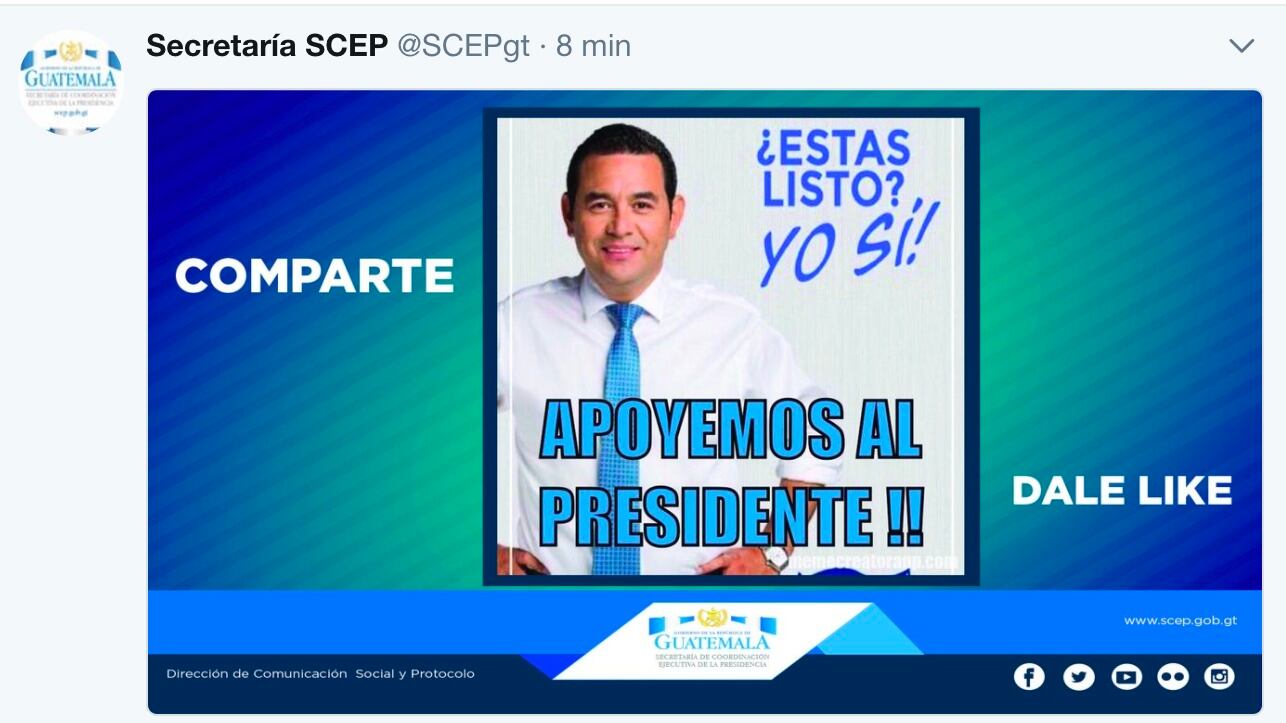 La Secretaría de Coordinación Ejecutiva de la Presidencia (SCEP) publicó dos veces una campaña a favor del presidente Jimmy Morales.