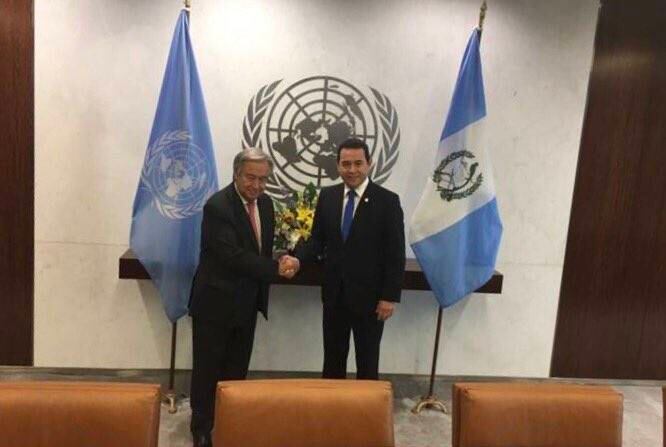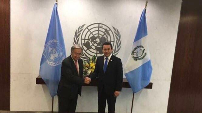 El presidente Jimmy Morales se reunió este viernes con el secretario general de las Naciones Unidas, António Guterres en la sede central de la organización internacional en Nueva York, Estados Unidos.