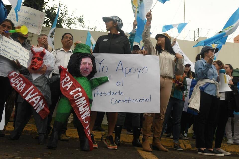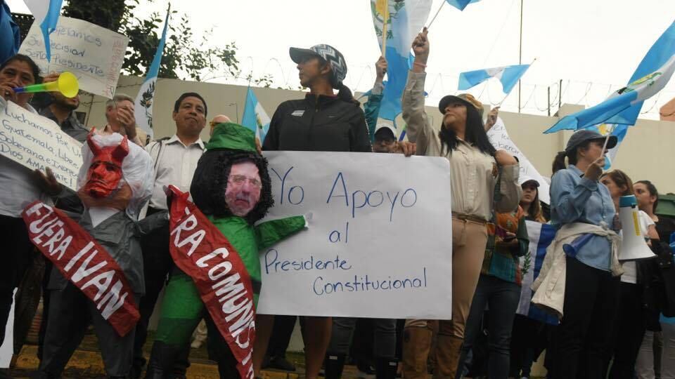 Como ha ocurrido los dos días anteriores, un grupo a favor del presidente y que respalda su decisión de "expulsar" a Iván Velásquez, volvió a hacer presencia frente a la sede de la CICIG, en la zona 10.