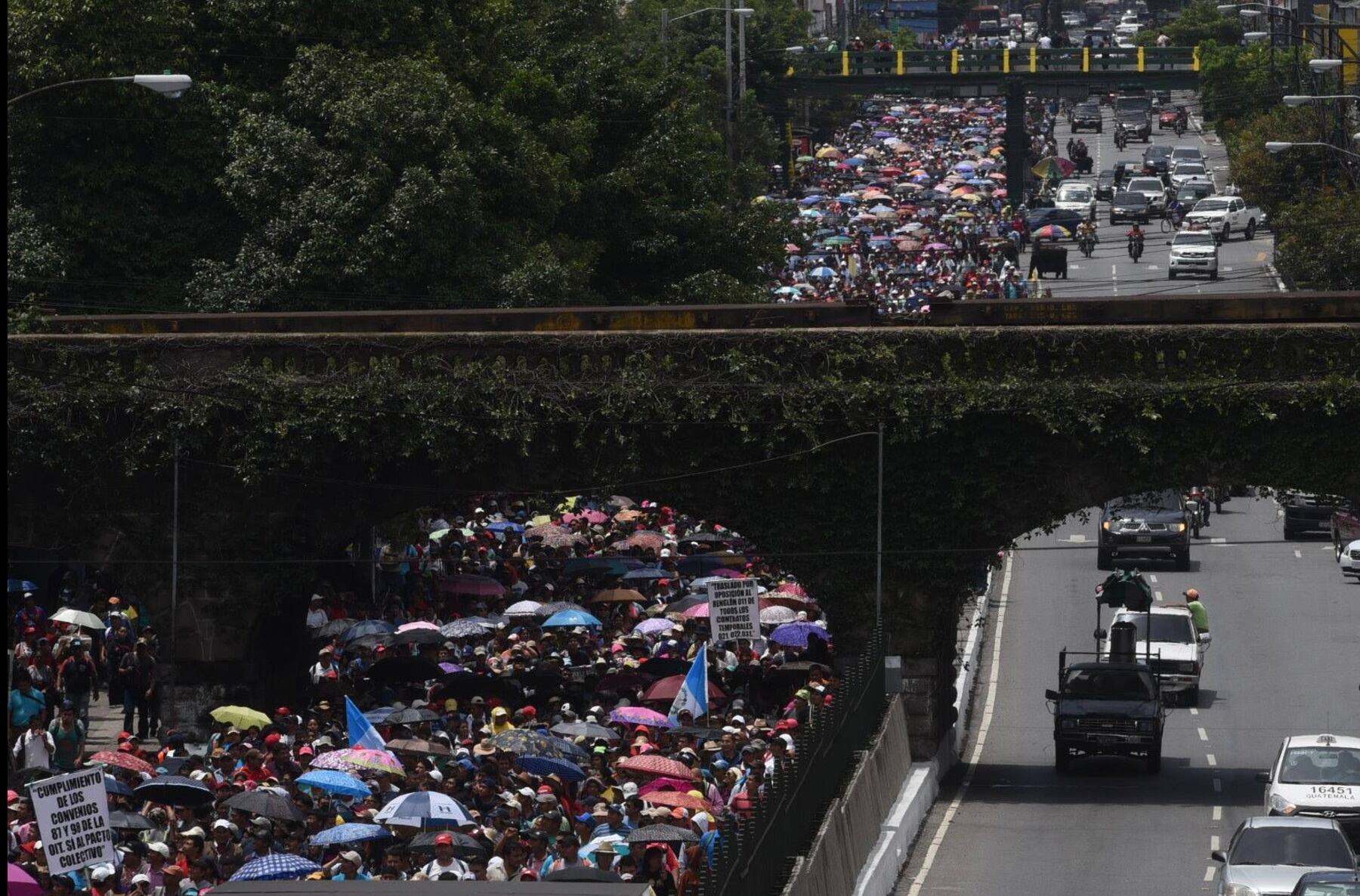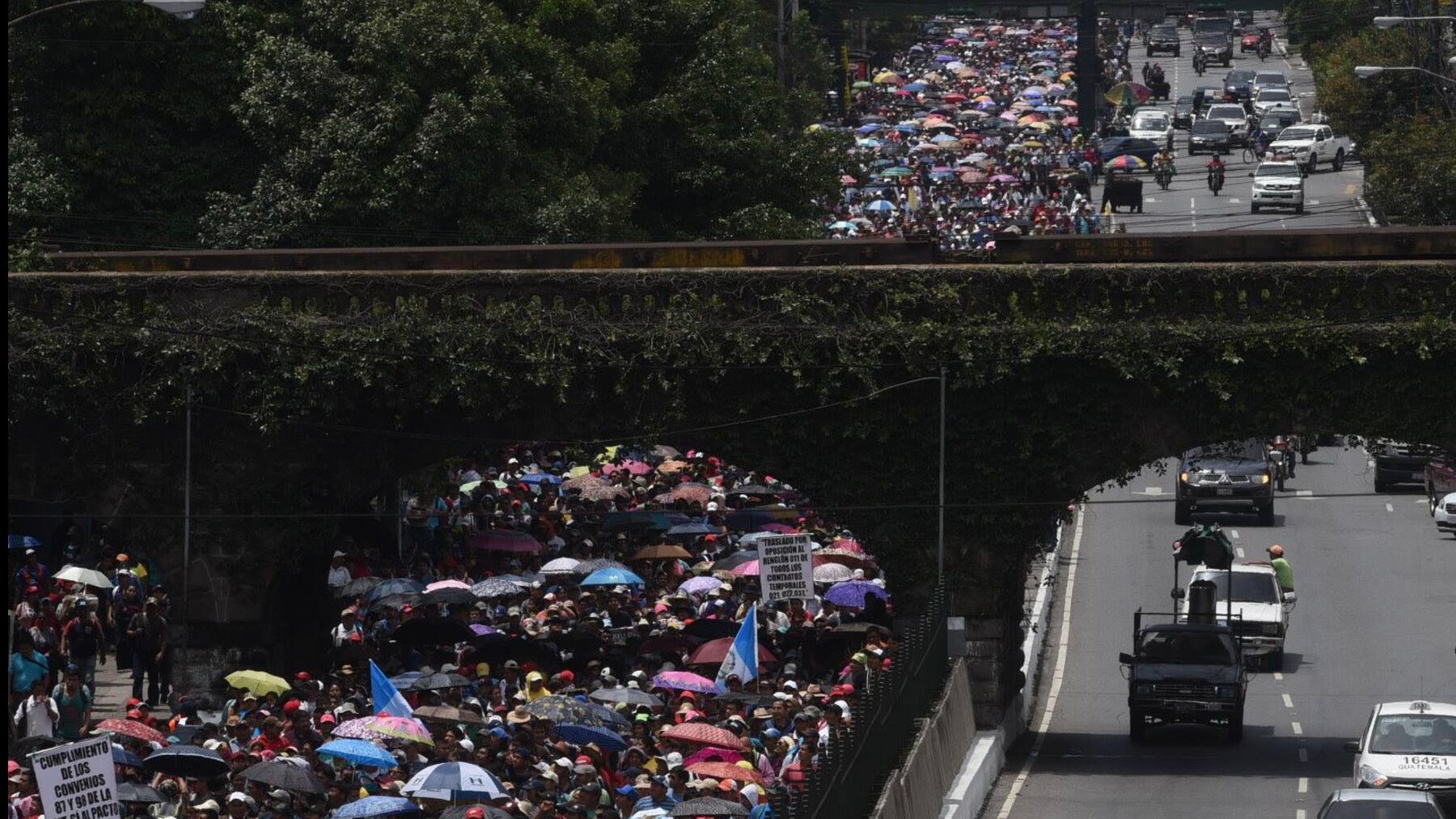 Maestros llevan a cabo este miércoles una caminata, la cual recorre la avenida Reforma y finaliza en la zona 1 capitalina.
