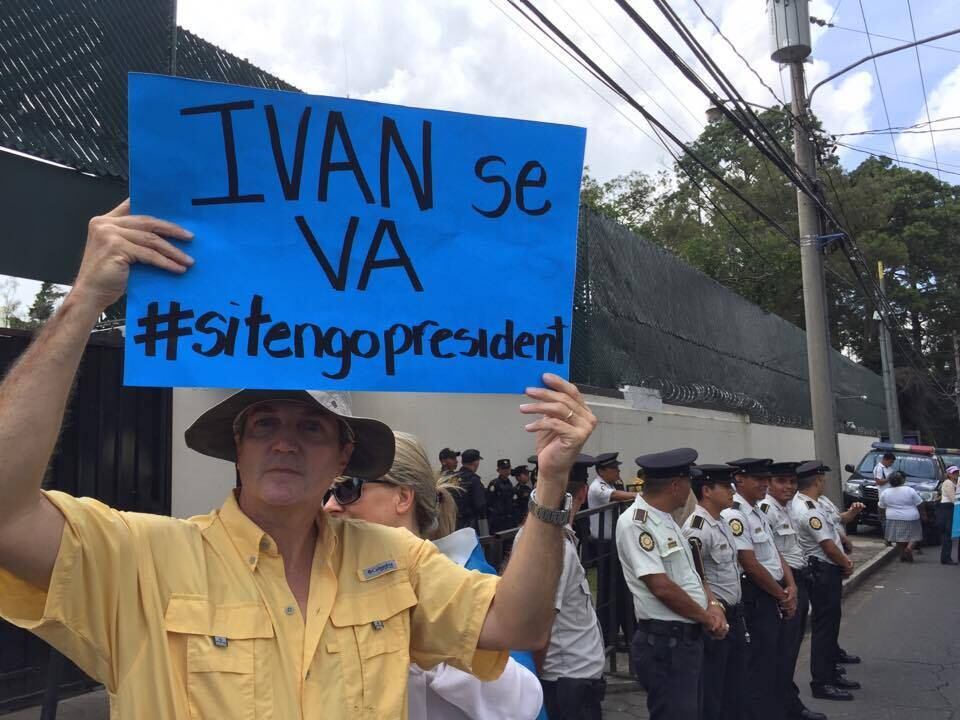 Después de varias horas de manifestación, se vio a un joven y a una mujer acercarse a los manifestantes para entregarles una bolsa de agua y un pan dulce. Estas dos personas estaban en la primera concentración en contra del titular de la CICIG y a favor del presidente Jimmy Morales.