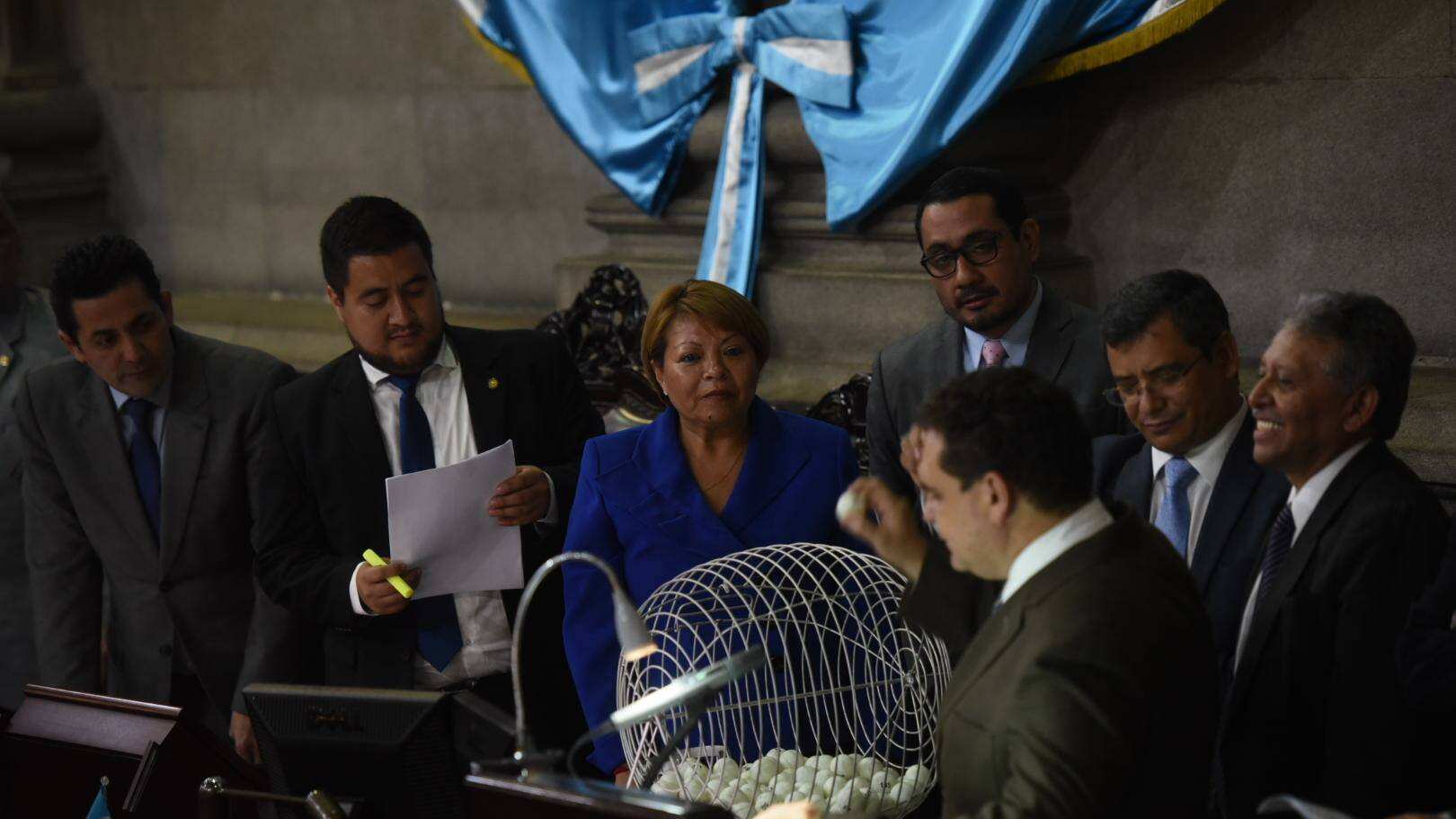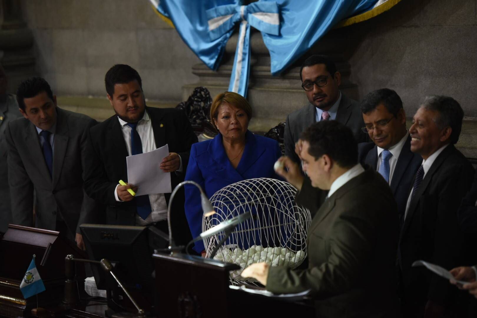 La elección, por sorteo, se realizó a solicitud del diputado Orlando Blanco, de la Unidad Nacional de la Esperanza (UNE), luego de que el Congreso recibió el antejuicio contra el mandatario.