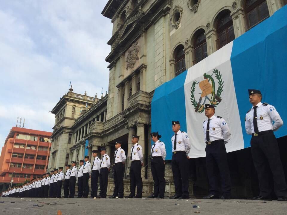 Una serie de incidentes ocurrieron ayer en el marco de las movilizaciones. Los ciudadanos entonaron el himno nacional e izaron una bandera de Guatemala teñida de rojo.