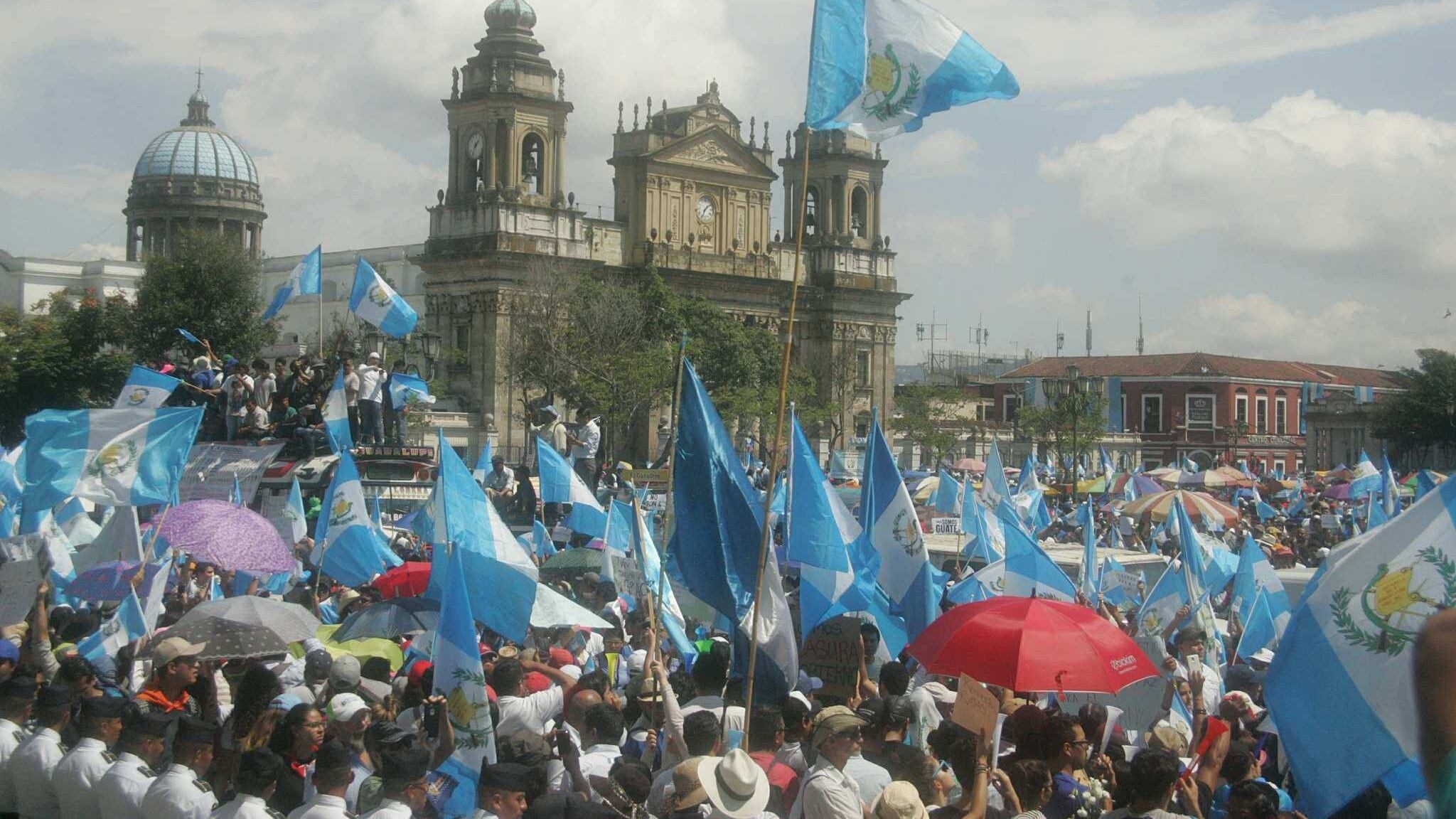 Con silbatos y lanzando consignas contra Morales, los manifestantes enfilaron hacia la plaza principal del centro histórico, corazón de las protestas anticorrupción desde 2015, cuando cayó el ahora encarcelado expresidente Otto Pérez por su vinculación en un fraude en aduanas.