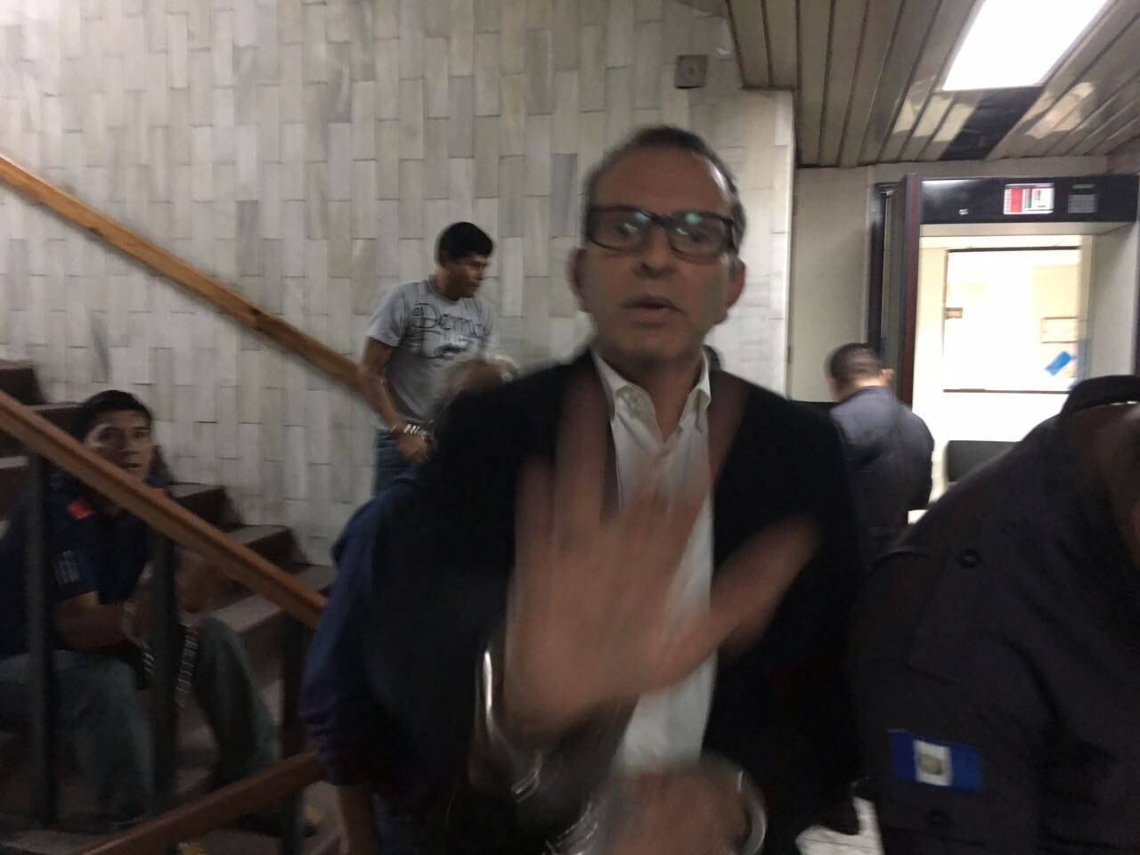Durante un receso en el Juzgado de Mayor Riesgo D, el vendedor de viviendas Alfredo Estuardo Morataya Paz se molestó debido a que era fotografiado. Enfrenta un proceso judicial por lavado de dinero junto con Arnoldo Medrano, quien fue alcalde de Chinautla.
