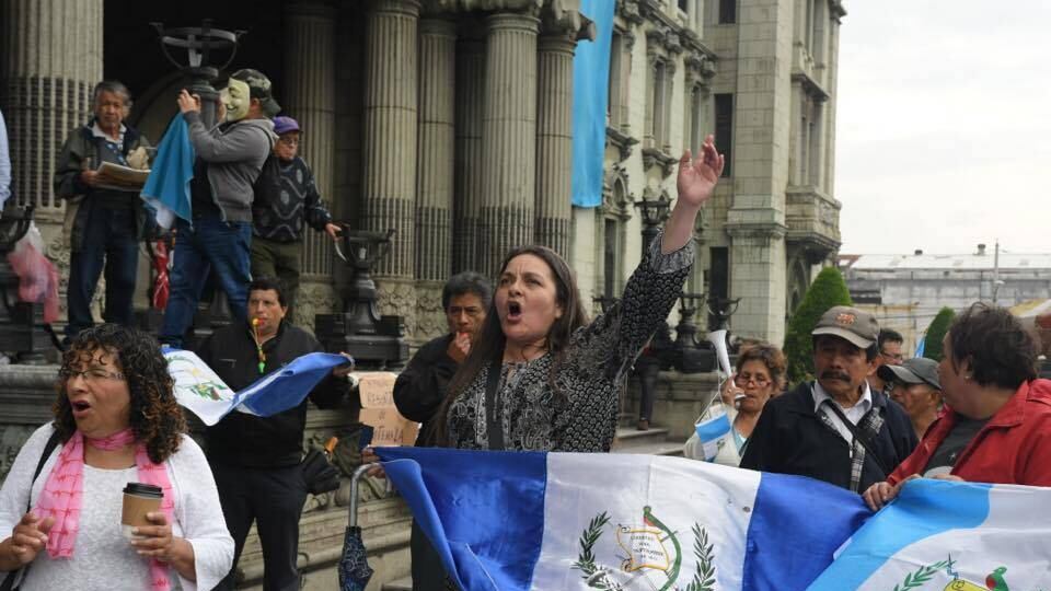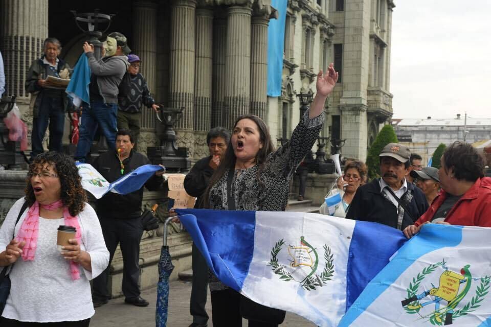 Un grupo de guatemaltecos cansados de la corrupción y de la clase política protestó frente al Palacio Nacional de la Cultura y criticó al gobierno con duros mensajes.