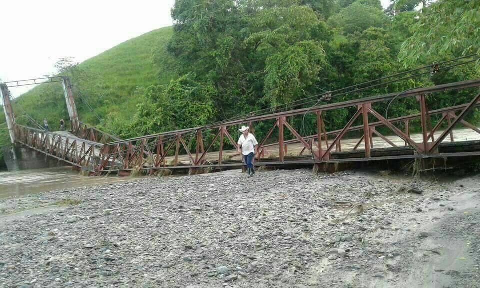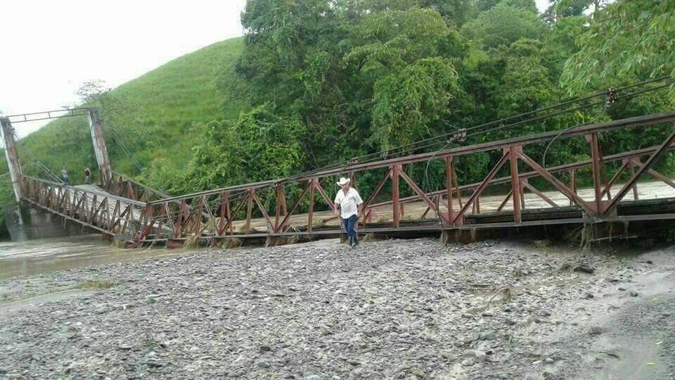 La lluvia de las últimas 24 horas incrementó el cauce del río y el puente se desplomó en Los Amates. Los vecinos de las aldeas Agua Caliente, Tepemechines y Los Cocos quedaron incomunicados, informó la Conred.