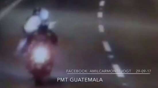 En el clip, compartido en redes sociales por Amílcar Montejo, intendente de la Policía Municipal de Tránsito (PMT), se puede ver cuando los dos delincuentes que se desplazan en una motocicleta en el carril izquierdo, desenfundan un arma de fuego e intentan detener al conductor de otra moto.