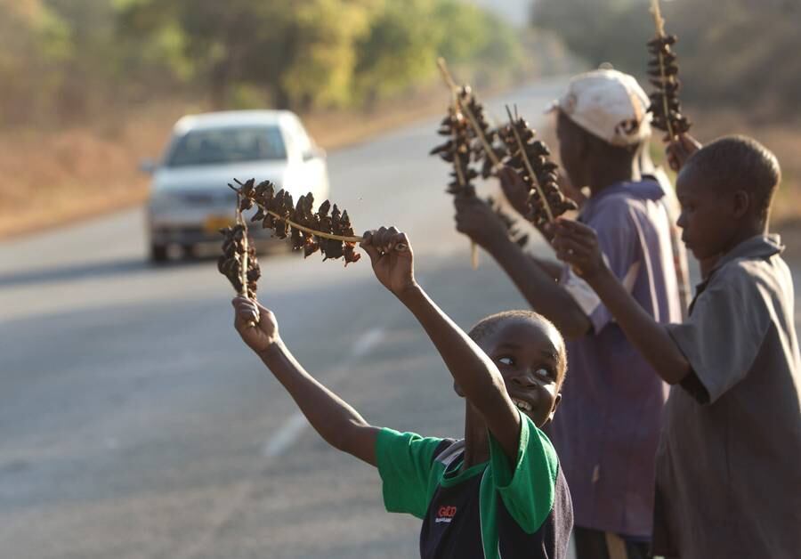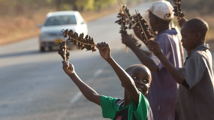 Con linternas en la cabeza, los niños de la villa rural de Chidza, en el centro de Zimbabue, corretean en las noches por las calles buscando ratones, que luego asan y venden a conductores en las carreteras que van hacia el vecino país de Sudáfrica.