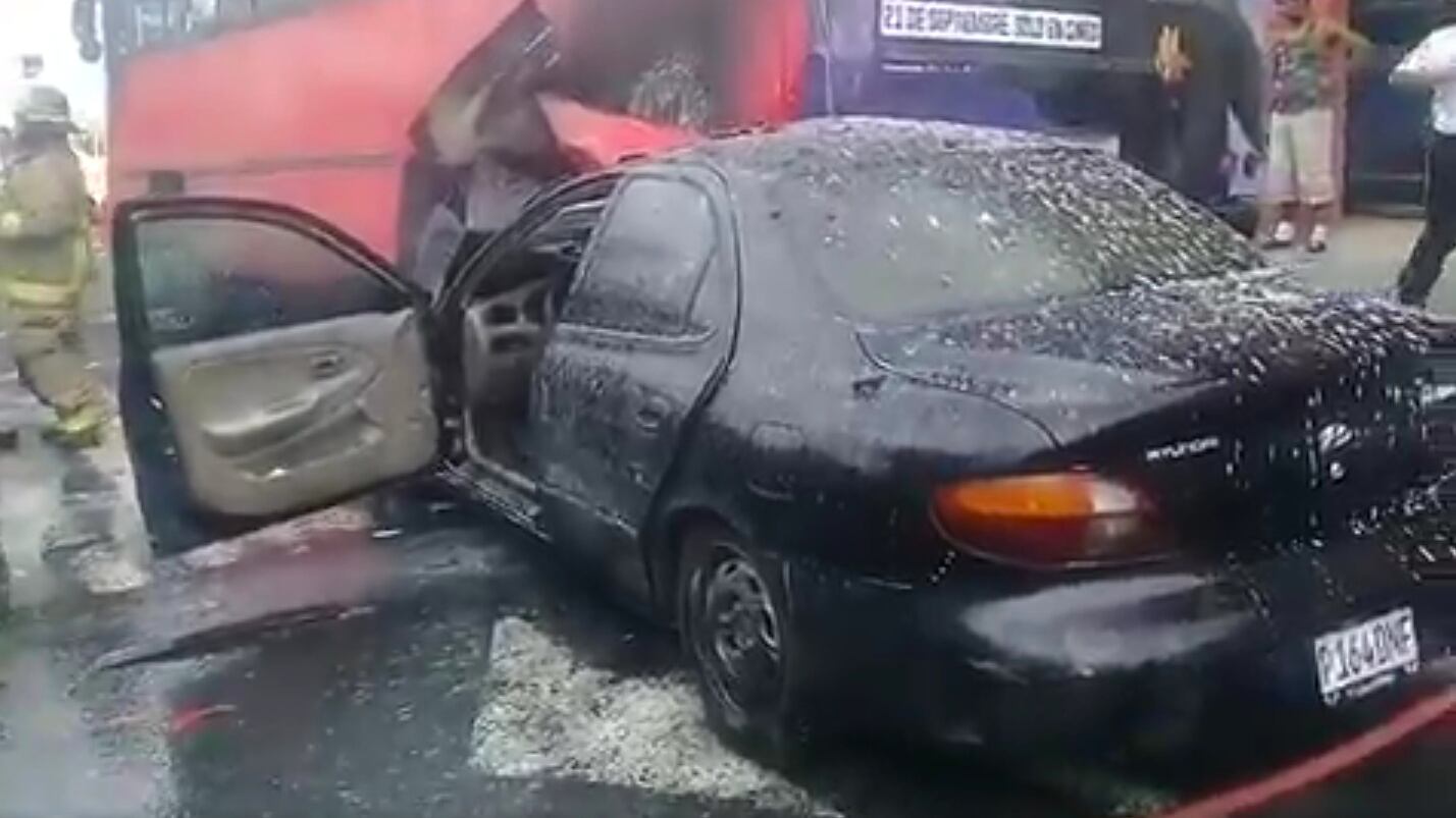 Luego del percance inició un incendio en el carro oscuro. Los pasajeros del autobús fueron evacuados y cuando llegaron los socorristas sofocaron el fuego, informó William González, portavoz de los Bomberos Voluntarios.