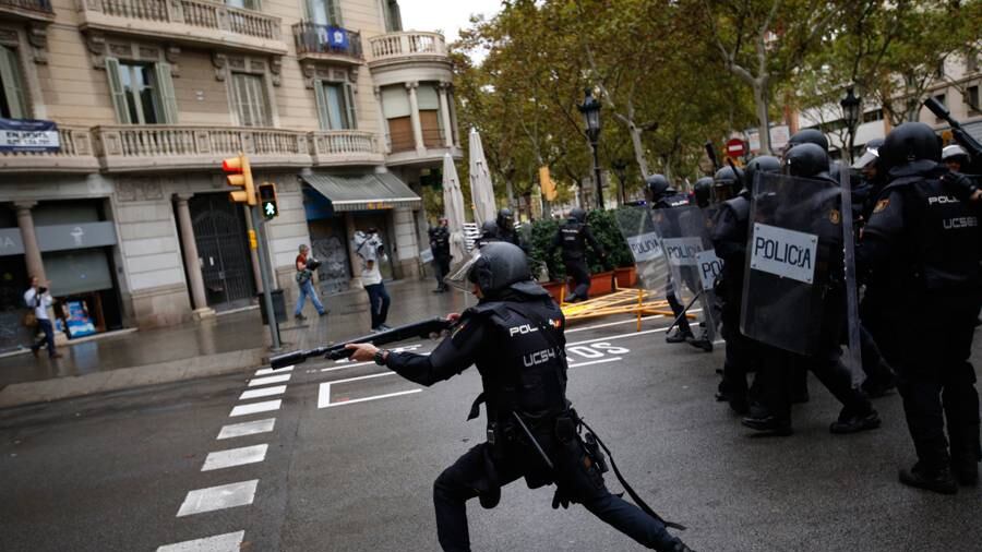 Los agentes dispararon las balas de goma para ahuyentar a la gente que impedía que los vehículos de la policía nacional dejaran el lugar luego de confiscar cajas de boletas. El gobierno español le ordenó a la policía impedir el referéndum.