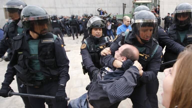 Gente en el piso, empujones, patadas violentas, jalones de pelo y exceso de violencia por parte de policías ante personas que asistieron a votar al referéndum en Cataluña, fue el triste marco de una jornada que el propio Gobierno calificó de "ilegal".