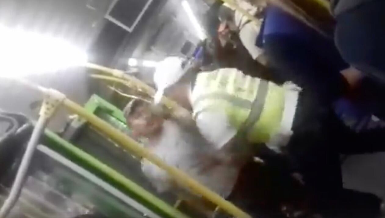 En el video, las imágenes muestran a un hombre subir y discutir con el policía municipal, después de unos minutos, el usuario es expulsado de un fuerte empujón por el oficial de la comuna capitalina.