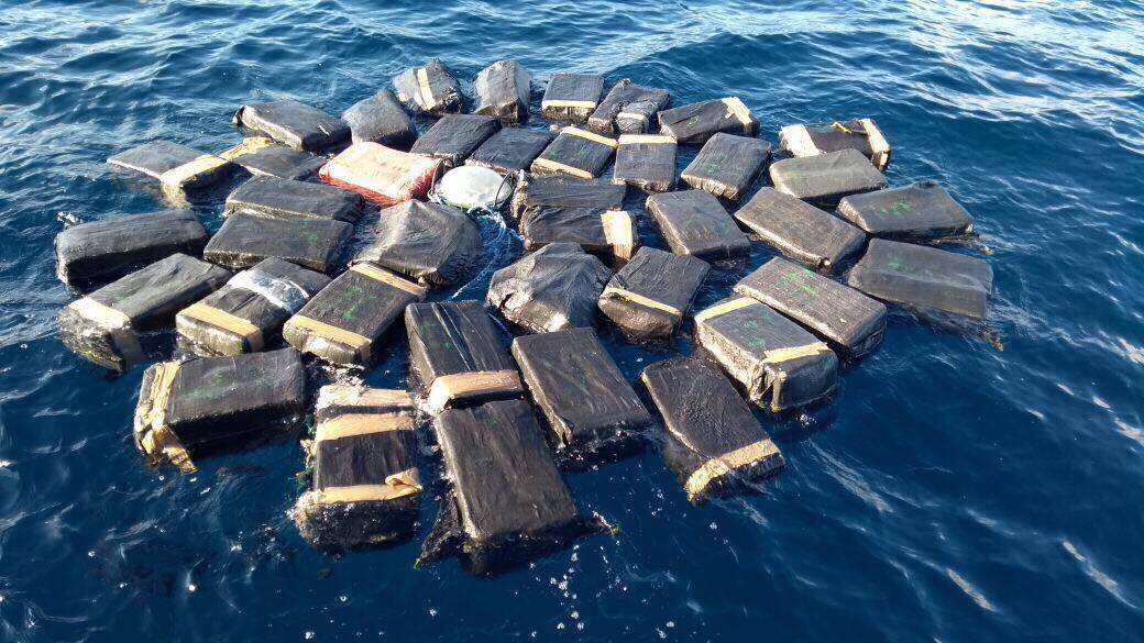 Mientras que en el océano Pacífico fueron encontrados 40 costales flotando en las aguas, mismos que contenían en su interior 800 kilos de droga.
