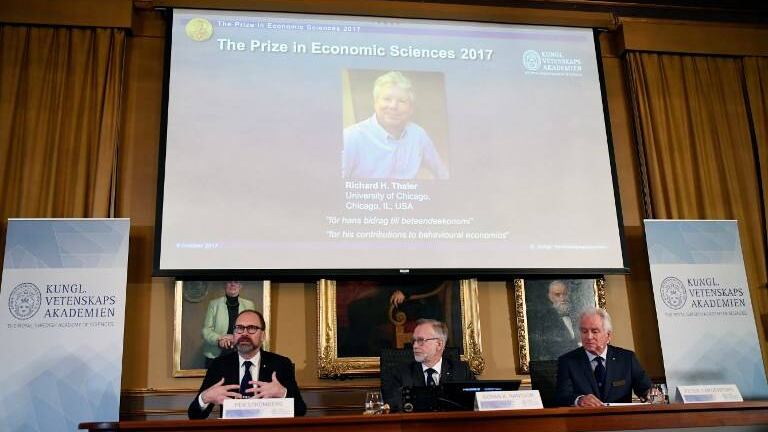El economista Richard Thaler ha mostrado cómo ciertas características humanas como “la racionalidad limitada, las preferencias sociales y la falta de autocontrol” afectan “las decisiones individuales y las orientaciones de los mercados”, explicó el secretario general de la Academia Real de las Ciencias de Suecia, que concede el Premio Nobel de Economía.