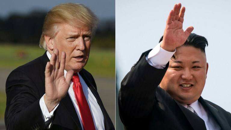 Activistas disfrazados como Kim Jong-un y Donald Trump. Foto: AFP