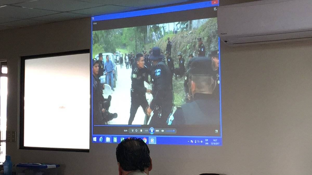 Con la reproducción de varios videos de un enfrentamiento entre pobladores y policías ocurrido hace dos años en una comunidad de Petén, se inició hoy el juicio contra dos personas.